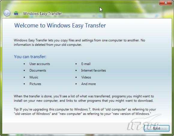 首先,需要在不是Windows7版本的操作系统上安装轻松传送软件。不过不用再向以前一样,从网上下载后再安装,而是可以直接从Windows7操作系统中拷贝这个软件。在这个向导的第四步,会提示用户是否需要安装“轻松传送”软件。用户可以选择“I need tu install it now”(我现在就需要安装)选项,则系统会再提示用户,是需要通过外接硬盘或共享网络文件夹安装还是通过USB闪存驱动器安装。如果用户选择“外接硬盘或共享网络文件夹安装”则系统会弹出一个对话框,让用户选择需要存储的目录。用户可以选择一个目录(可以先不共享,等需要的时候再共享),然后操作系统就会把这个软件复制到用户指定的目录中。然后其它操作系统就可以直接使用这个软件拷贝。显然,这比以前要从网上下载插件安装要来得方便。微软操作系统在兼容性上的这点改变值得肯定。而且这个软件拷贝不用安装,可以直接运行。这真的很不错。