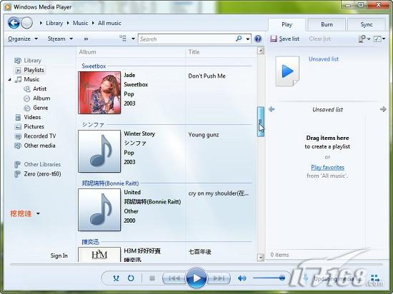 在Windows 7系统中,其自带的Windows Media Player媒体播放器版本为12,Windows Media Player简称WMP,WMP主要是针对常见的媒体格式,比如WMV、MP3、WAV、AVI等媒体文件,同时它还兼顾着流媒体播放的重任,很多视频直播用的就是WMP来观看。 在Windows系统的所有版本中,WMP 12可以堪称功能最强大的了,它能有效的管理你的音乐、视频、图片和录制的电视节目,借助Windows7的媒体库,我们能在家庭网络范围内共享数据,非常的方便。而且WMP12支持高清格式视频的播放,相比以往的WMP支持的视频格式要多很多。当然与其他专业播放器相比,还是有一定差距的。 (点此查看大图)