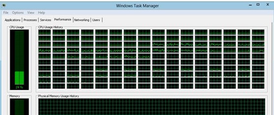 那么文章中涉及服务器管理员和超级电脑用户提到的大量逻辑处理器的管理问题。用户具备超线程功能的系统,将会查看到到每个物理处理器的多逻辑处理器,在W7之中,访问查看系统中的多处理器,是通过任务管理器CPU图表,获取的信息是有所限制的: