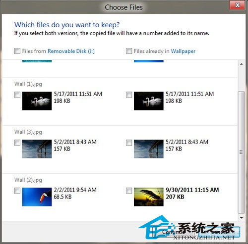 在Win8中,很多操作都被进行了可视化改造,其中细节1所说的速度曲线图便可看作一例。此外当我们在Win8中删除一张图片时,系统也会很贴心地显示出图片预览图,以便用户快速确认(很遗憾!多图片删除没有这项功能)。而且当文件复制产生冲突时,Win8也会提供直观的可视化筛选,通过最原始的人眼辨别,来告诉用户每张图片到底是个什么样子。