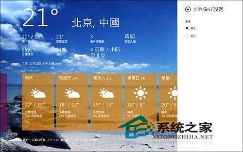 就拿那个炫得出奇的天气预报来说吧,很多网友其实都有这样一个疑问,那就是如何将系统默认华氏改为摄氏?其实解决的方法非常简单,只需进入天气预报界面,调出左下角开始菜单,然后依次点击“Settings”→“Weather Preferences”,最后将“华氏”改为“摄氏”即可。怎么样?这回 “按需显示”的意思明白了吧。