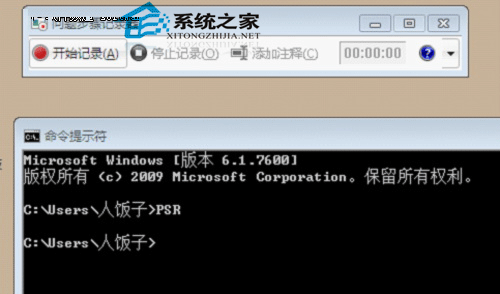 开始菜单→所有程序→附件→命令提示符→键入PSR→回车→左键“开始记录”就开始记录了。如果系统出问题了,其中problem Steps Record将记录用户每次点击和键入和以及屏幕显示压缩打包成MHTML文件。