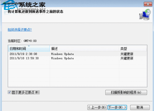 右键计算机属性→系统保护→系统还原→下一步→再选还原点→下一步→完成(计算机会自动处理)
