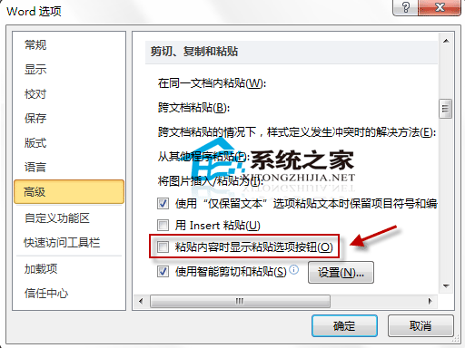 现在其它的 Office 程序也会同步应用这个更改,如下图所示,Word 中的“粘贴内容时显示粘贴选项按钮”复选框也变成了未勾选状态。