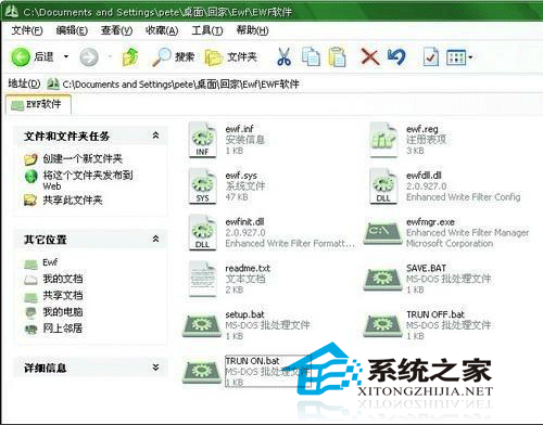 重启完成后,双击运行D:EWF文件夹中的TRUN ON.bat文件,这时系统又会自动重启。当下一次进入系统时,系统已经处于EWF的保护之中了。EWF默认只对第一分区进行保护,也就是我们的C盘,如果我们想让EWF保护其他的分区,可以用记事本打开刚才运行的TRUN ON.bat文件,将其中的“ewfmgr c: -enable”修改为“ewfmgr d: -enable”,保存后双击运行就可以了。