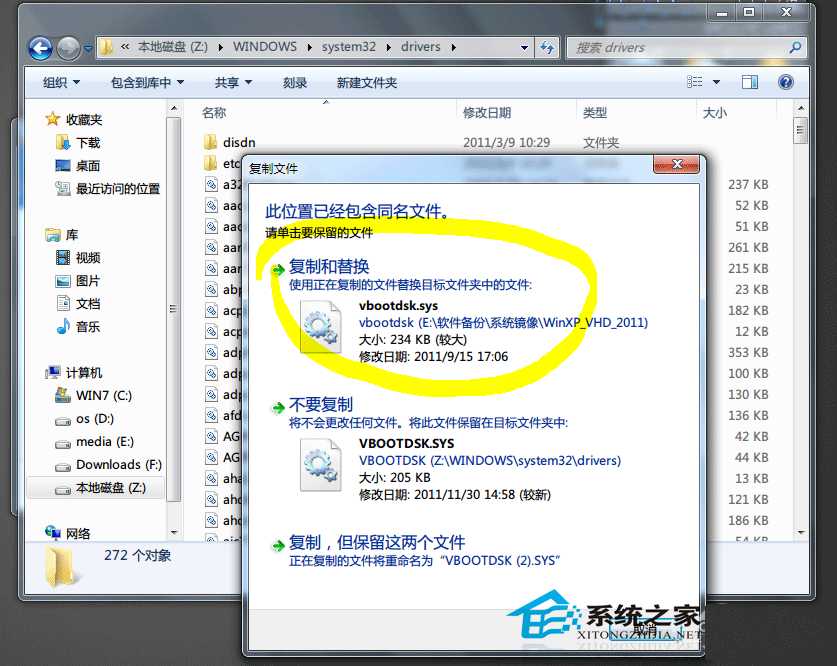目录为XP VHD下 c:\windows\system\drivers\vbootdsk.sys替换成我的那个同名文件
