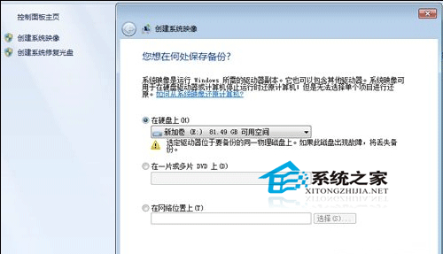 1.点击Windows系统,依次选择“开始”>控制面板>系统与安全>备份与还原,选择“创建系统映像”。