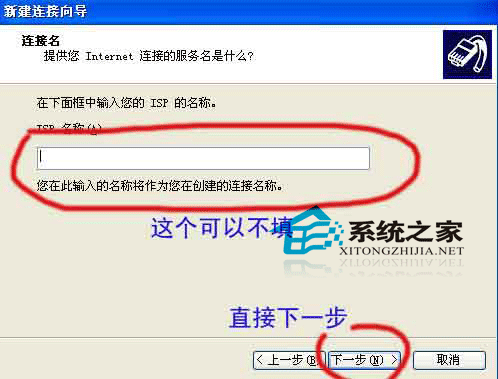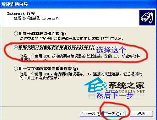 (3.)要求用户名和密码的连接来连接---------(4.)输入ISP名称(随便输入即可),(5.)然后将宽带公司提供的