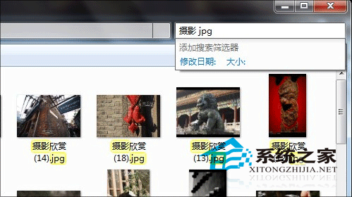 如果感觉搜索的结果太繁多,那么就可以利用筛选器缩小范围。一般来说,“库”的筛选器比较丰富,可选范围包括“作者”、“类型”、“修改日期”、“大小”、“名称”、“唱片集”、“艺术家”、“拍摄日期”、“文件夹路径”、“分组”几大类型。使用方法比较简单,直接点击筛选器,输入恰当的条件即可。但如果只是普通文件夹,那么便只有“修改日期”和“大小”两项可选了!