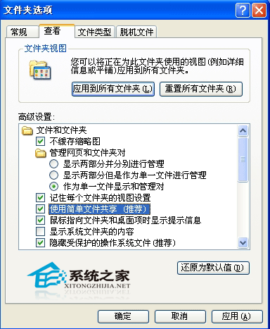 1.打开我的电脑,点菜单栏上的工具,下拉,点击文件夹选项,查看中,在[使用简单文件共享(推荐)]这项前面打上勾。