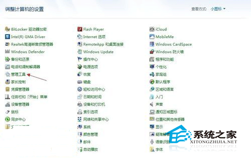 在下面找到“管理工具”项目,双击打开