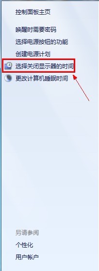 3.在左侧的蓝色区域单击“选择关闭显示器的时间”