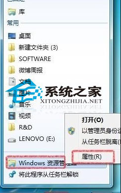 在资源管理器快捷方式上选择右键-属性