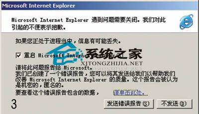 这里所提到的“报告”,其实就是Windows 2003系统中的“发送错误报告”功能;在windows 2003系统出错时,你常常会看到如图3所示的错误报告窗口,如果你单击该窗口中的“发送错误报告”按钮,系统中的一些隐私信息也会一并被提交到微软公司手中。尽管该“报告”功能可以有效帮助微软公司搜集操作系统的缺憾,可是对于不少普通电脑用户来说,“报告”功能只会泄露系统隐私,不会给自己带来任何好处;为了操作的便利以及系统的安全,笔者建议你屏蔽掉windows 2003系统中的“发送错误报告”功能;在屏蔽该功能时,可以按如下方法来进行: