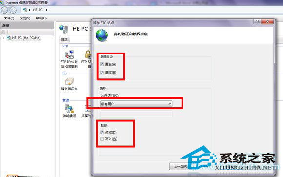 IIS的ftp是不能添加密码的,要密码也是用你电脑的账户,所以还是选择所有用户。