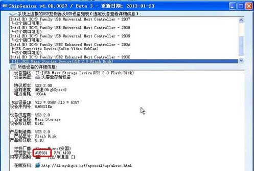 二、第二部运行ChipGenius,这里我们要知道优盘的芯片是什么才能进行量产。运行软件之后查看结果。复制主控型号信息(只要型号信息就行了)。