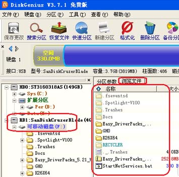 3、软件打开后,找到你的U盘,再点击右边的“浏览文件”,则应该可以看到下面的文件了: