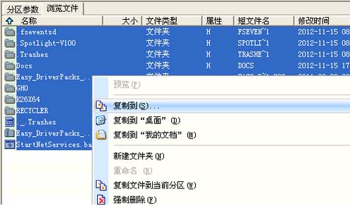 4、然后,我们再选择你要的恢复的文件,右击之,选择某项复制功能即可: