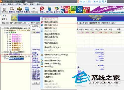 2、使用分区工具diskgenius,将U盘分区删除。使用分区工具可以让你不用到PE里面去设置U盘,软件可以删除U盘分区,也可以将分区合并,效果好速度快,也是一款非常好用的U盘工具。