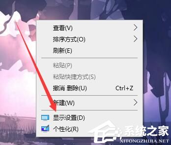 1、首先在桌面空白处,鼠标右键。然后选择“显示设置”。