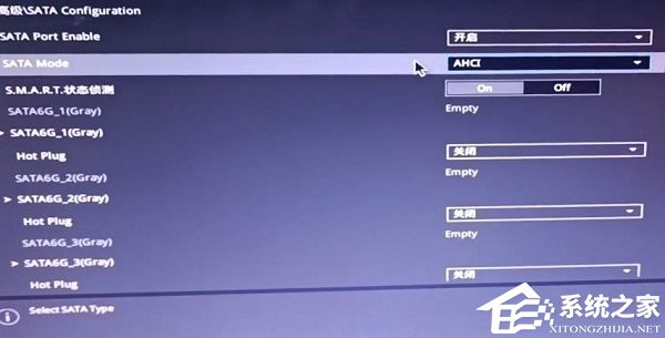 2、然后通过键盘的↑↓键来操作,将其中的SATA Mode改为AHCI。