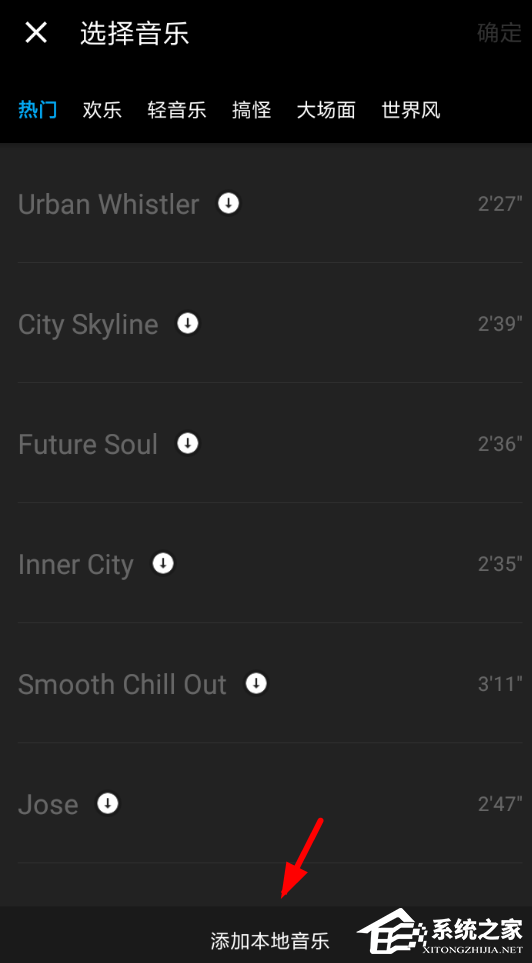 4、当进入到添加音乐的列表之后,通过底端的“添加本地音乐”功能,软件就会扫描手机本地的所有音频文件,从而让你进行设置与添加。