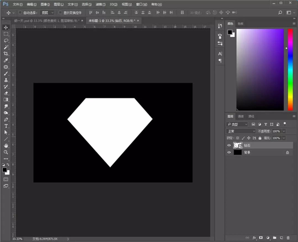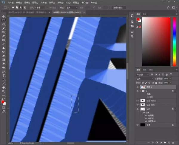 1、打开【PS】,新建任意画布大小,拖入钻石素材,使用【矩形选框工具】裁剪掉不要的部分。添加图层样式;