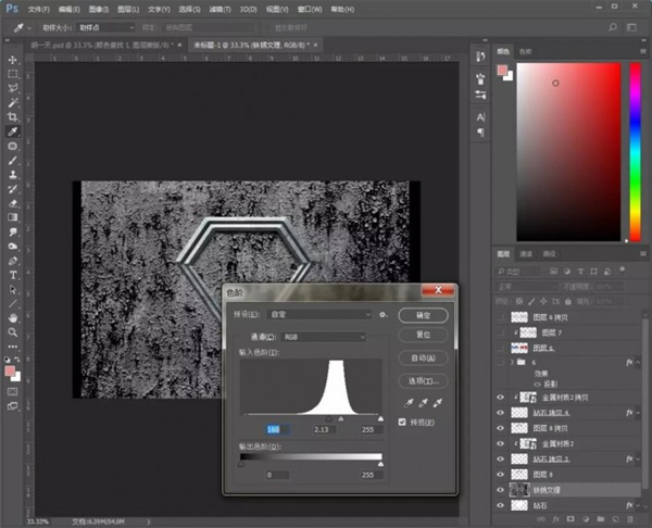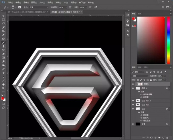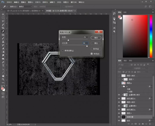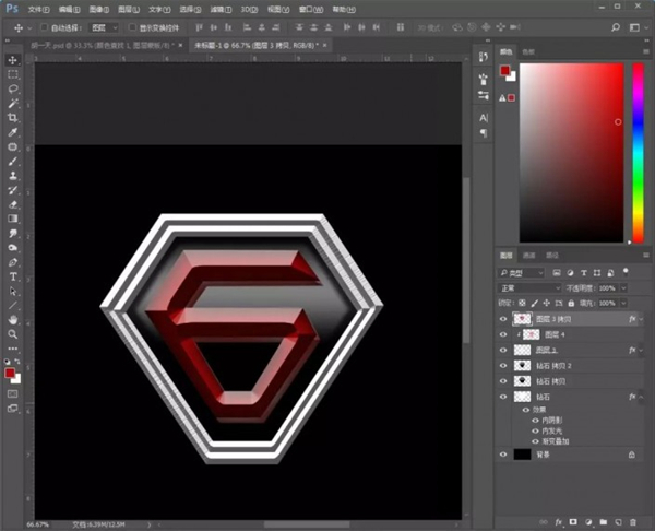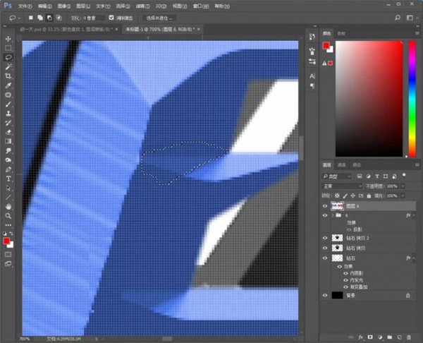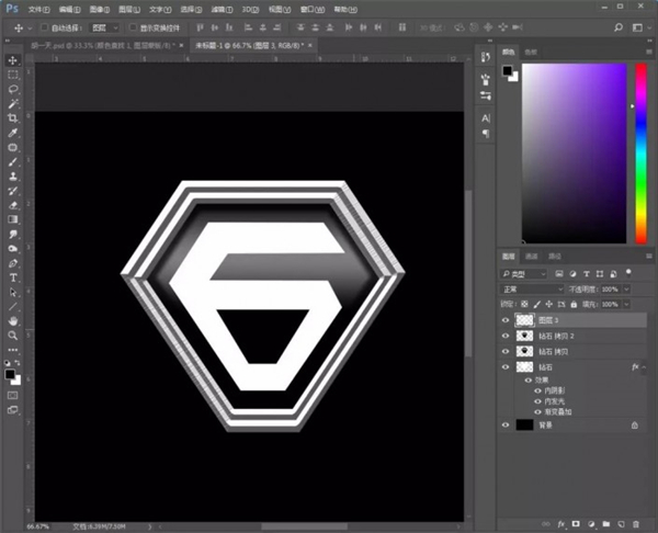 12、拖入金属材质素材,放在钻石图层上方和中间那个“6”字上方,创建剪贴蒙版;