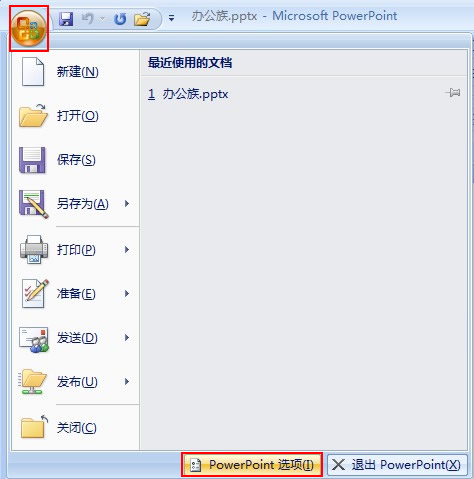 1、打开PowerPoint2007,点击左上角的“Office按钮”,在下拉菜单中选择“PowerPoint选项”对话框。或者在编辑框的最顶端点击“自定义快速访问工具栏”,在下拉菜单中选择“其他命令”。都可以进入“PowerPoint选项”对话框。