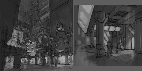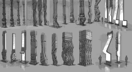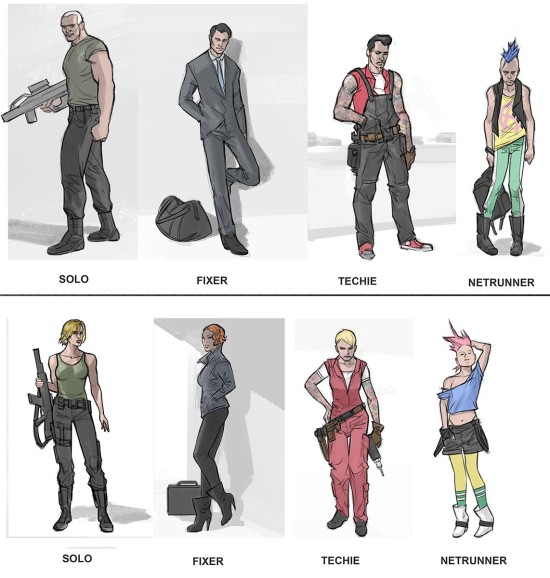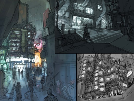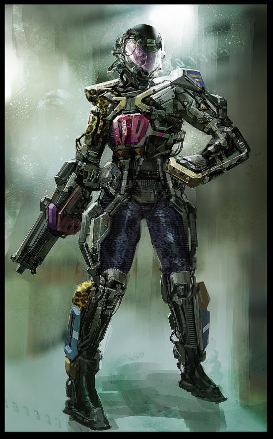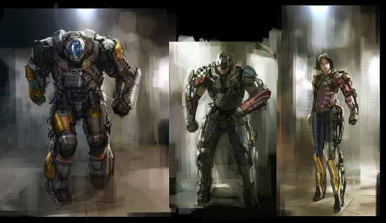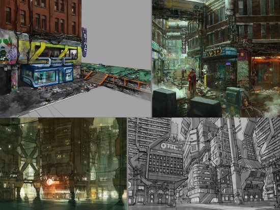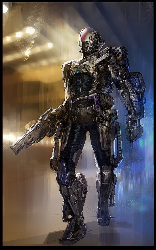 根据创作者介绍,这些概念图多绘制于于2013-2014年预制作阶段,展现了夜之城众多角色、环境的设计创意,其中还有一组“机械战甲(MECH Suit)”的概念图。