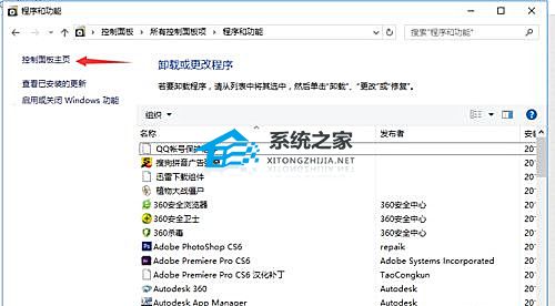 2. 在新弹出的菜单中选择左边的“控制面板主页”,如图所示。