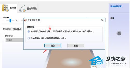 5. 在弹出的对话框中,选择“将相同类型的输入插孔链接为一个设备”然后点击确定。