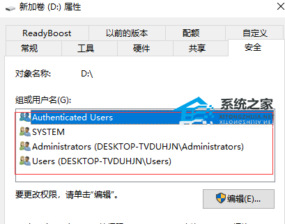 4. 如果没有这几个组或用户名,则点击编辑将其添加进去,退出后,问题就可以解决了。