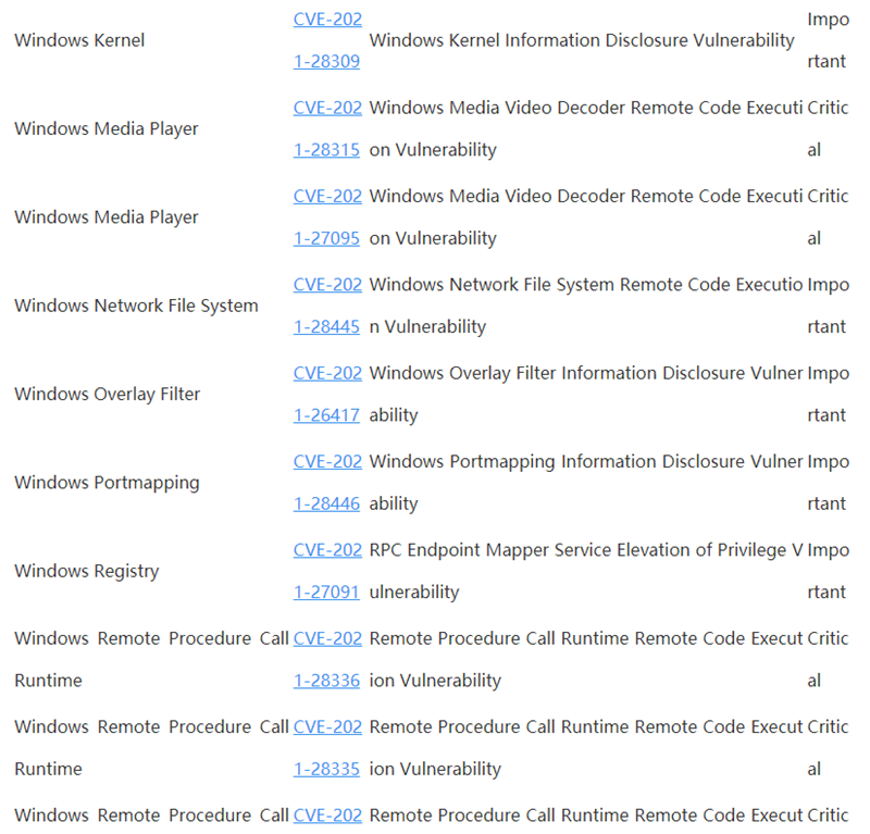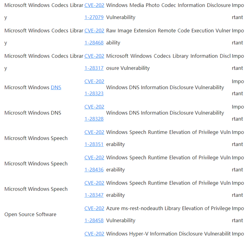 此外,今天微软还修复了 5 个公开披露的零日漏洞,其中1个已知用于网络攻击。更糟糕的是,微软修复了 NSA 发现的 4 个关键的Microsoft Exchange漏洞。作为今天补丁星期二的一部分,微软已经修复了4个公开披露的漏洞和一个主动利用的漏洞。