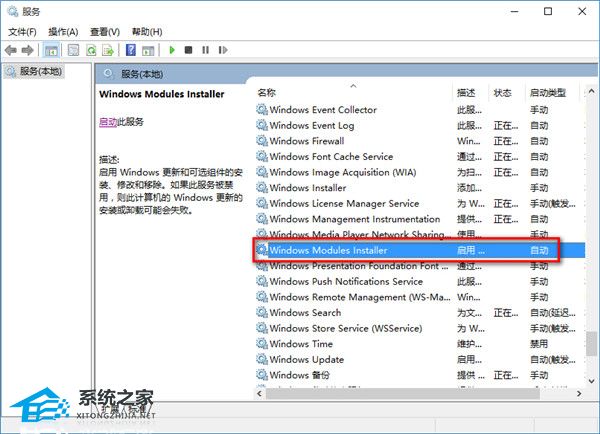 我们在服务(本地)窗口找到:Windows Modules Installer服务,查看是否被禁用;