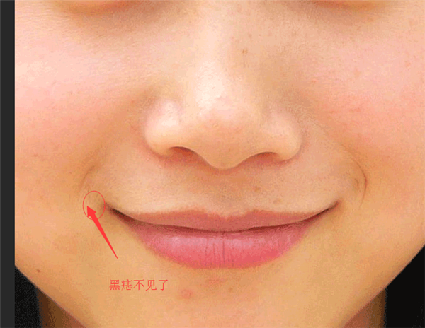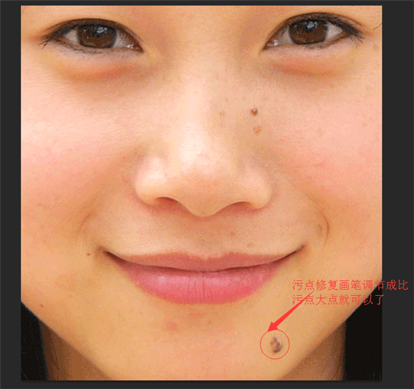 调节好之后,单击鼠标左键不松手进行涂抹,把污点部分给涂抹之后就发先污点被修复了,效果图附上: