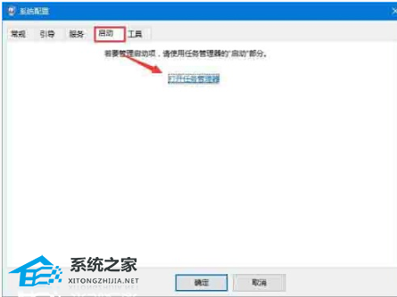 2. 在“系统配置”对话框的“启动”选项卡上,单击“打开任务管理器”。