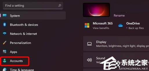2. 然后在其中左侧栏找到“Accounts”,选择其中的“添加手指选项”。