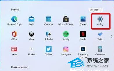 1. 首先我们按下键盘“Windows”打开开始菜单,然后点击其中的“设置”。