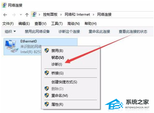 这时可以看到网络连接的图标,右键点击正在使用的网络连接,在弹出菜单中选择“诊断”菜单项。