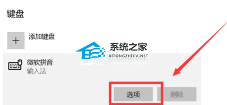 7. 在“微软拼音”的展开项中单击“选项”按钮。
