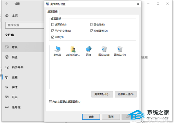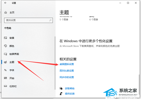 3. 个性化界面点击主题中的桌面图标设置打开。