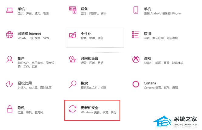 2. 我们在设置页面选择“更新和安全。