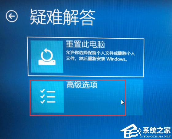 5. 进入疑难解答页面选择”高级选项“。