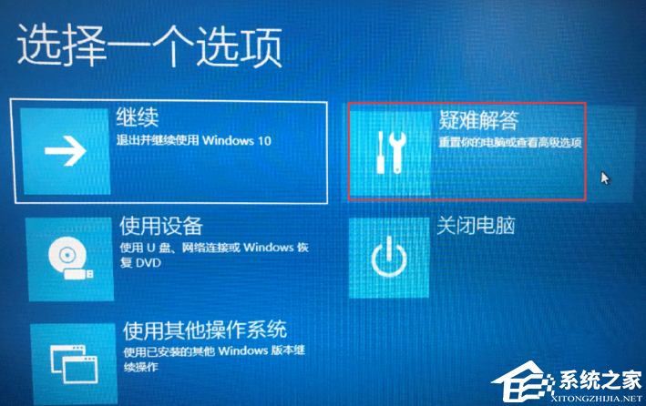 4. 在启动页面选择疑难解答。