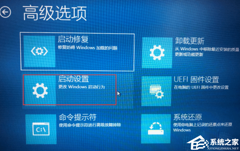 6. 在”高级选项“页面中选择”启动设置“。