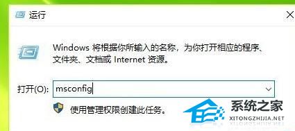 2. 在运行窗口输入“msconfig”。