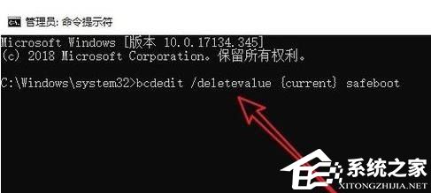 2. 输入 bcdedit /deletevalue {current} safeboot 后回车,重启计算机即可。