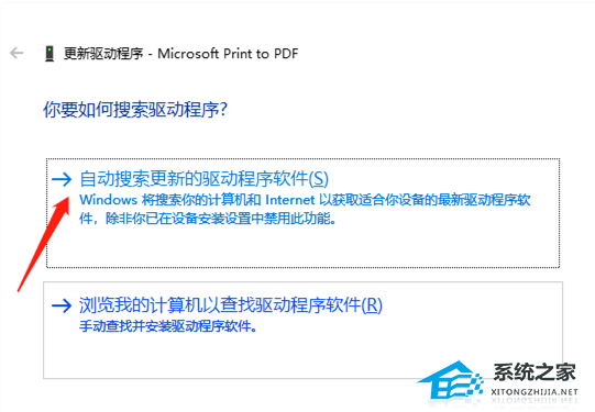 4. 你要如何搜索驱动程序?分别有【自动搜索更新的驱动程序软件(Windows 将搜索你的计算机和 Internet 以获取适合你设备的最新驱动程序软件,除非你已在设备安装设置中禁用此功能)】和【浏览我的计算机以查找驱动程序软件(手动查找并安装驱动程序软件)】,有下载驱动程序的情况下,建议选择第二项,如果没有从打印机官网上下载最新驱动程序,可以选择自动搜索驱动程序软件;
