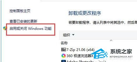 4. 然后点击左边栏【启用或关闭 Windows 功能】;